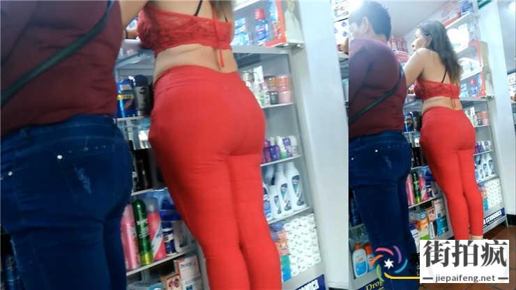 商店近拍红色紧绷打底裤饱满大屁股少妇[MP4/268M]
