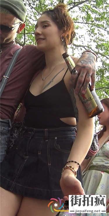 街拍牛仔超短裙大胸洋妞性感丰臀[MP4/398M]