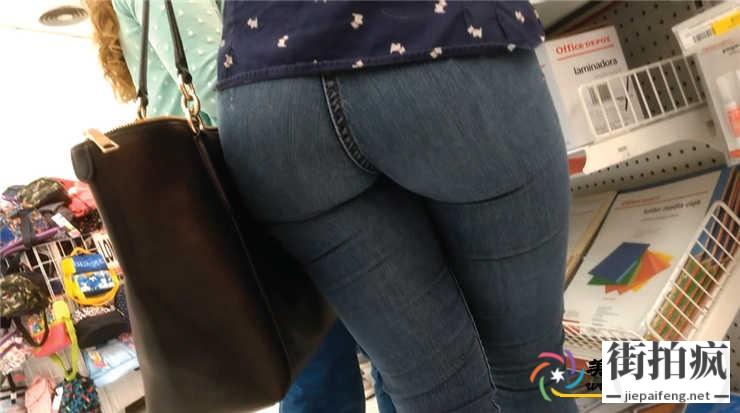 蓝色紧绷牛仔裤金发美眉极品饱满圆润翘臀[MP4/187M]