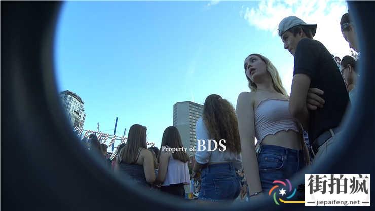 街拍几个牛仔热裤金发美眉美腿圆润翘臀[MP4/699M]