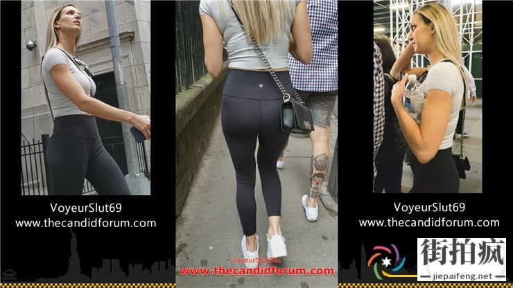 街拍黑色瑜伽裤金发高挑美眉性感美腿美臀[MP4/245M]