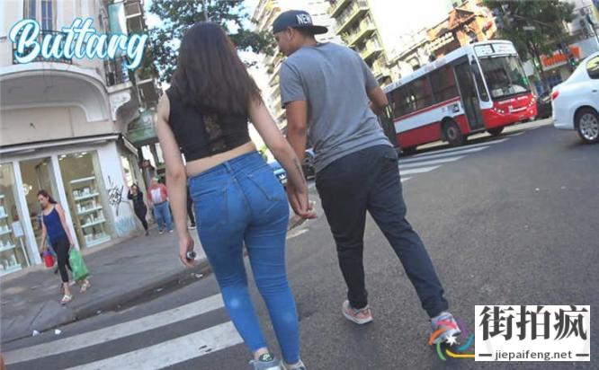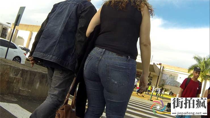 街拍蓝色紧身牛仔裤洋妞性感饱满圆臀[MTS/308M]...