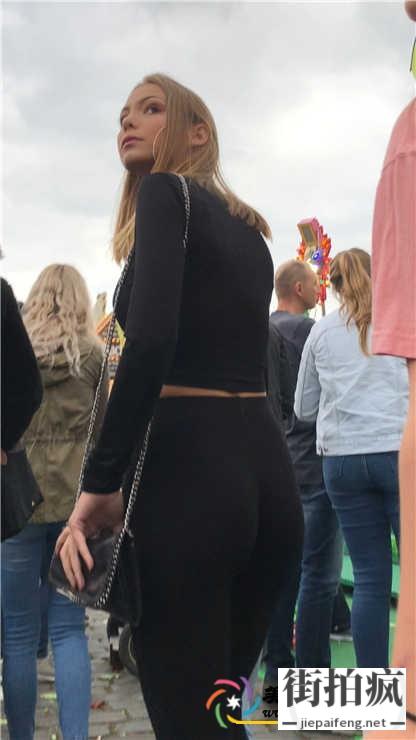 街拍黑色氨纶紧身裤金发洋妞性感饱满圆润宽臀[MP4/427M]