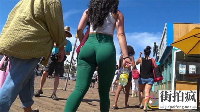 街拍绿色紧身裤OL洋妞性感圆润翘臀[MP4/492M]