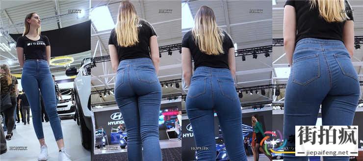蓝色紧绷牛仔裤金发高挑长腿美女性感丰臀[MP4/451M]