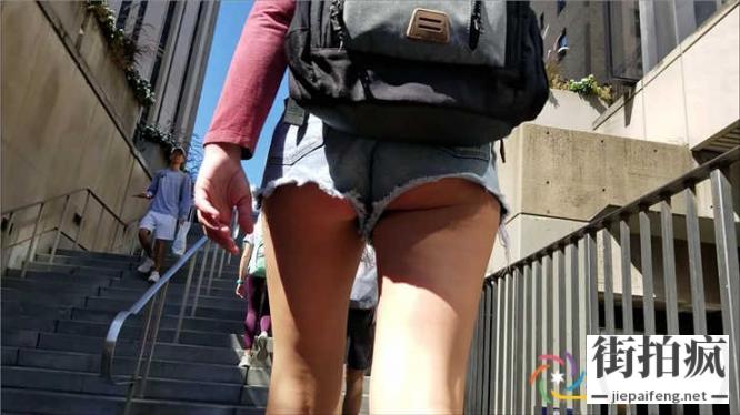 街头近拍蓝色牛仔热裤性感长腿圆润翘臀美眉[MP4/620M]