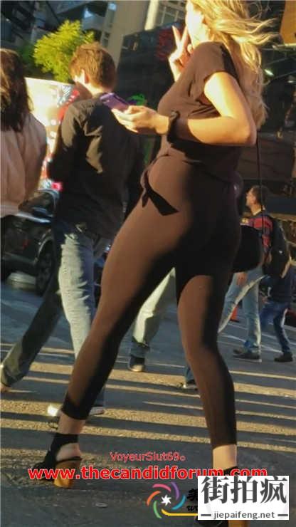 街拍黑色紧身瑜伽裤金发洋妞性感美腿饱满圆润翘臀[MP4/747M]...