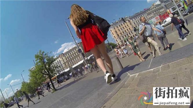街拍红色短裙金发美眉性感身材美腿[MP4/296M] ...
