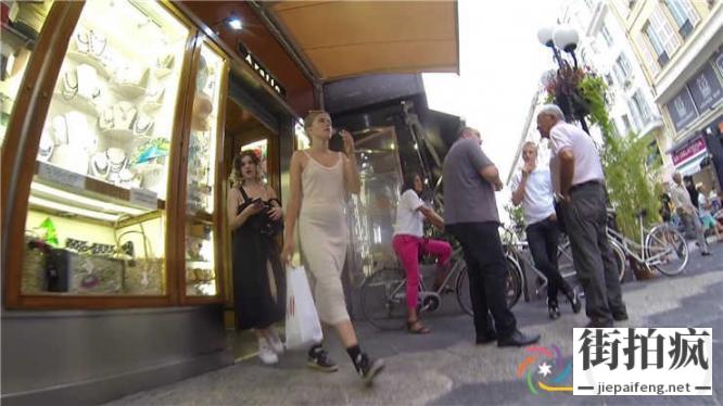 街拍微透连衣长裙金发洋妞性感翘臀显丁字裤[MP4/270M]