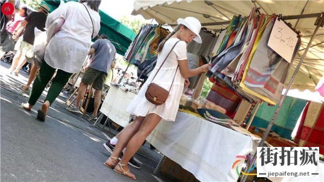市场街拍白色连衣短裙金发美少妇[MP4/313M]