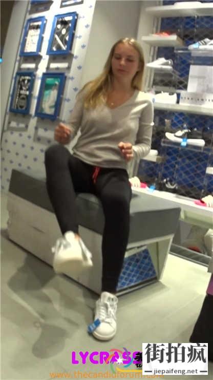 商场试鞋的黑色紧身瑜伽裤极品圆润翘臀金发美眉[MP4/756M]