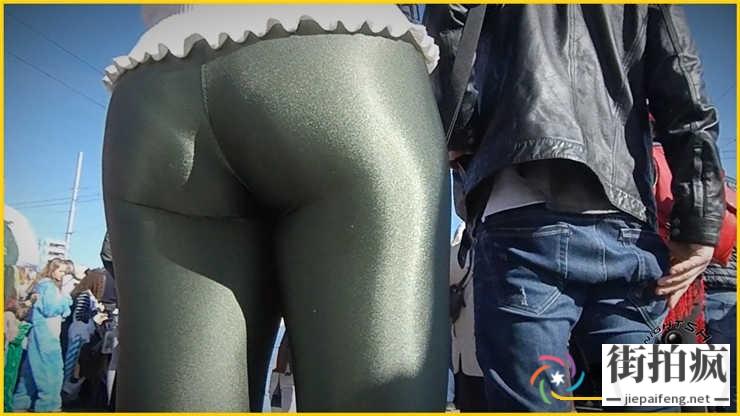 街拍绿色紧身氨纶裤性感洋妞极品丰臀[MP4/502M]