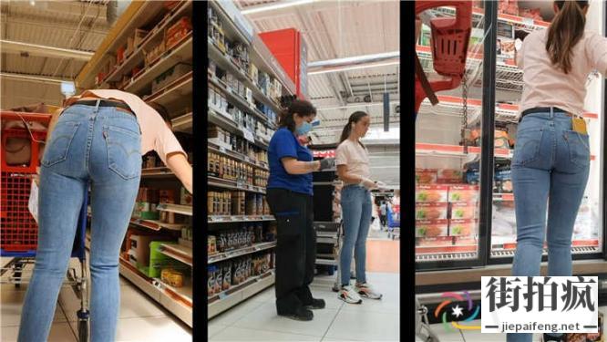 超市购物的蓝色紧绷牛仔裤美眉长腿圆臀诱惑[MP4/668M]