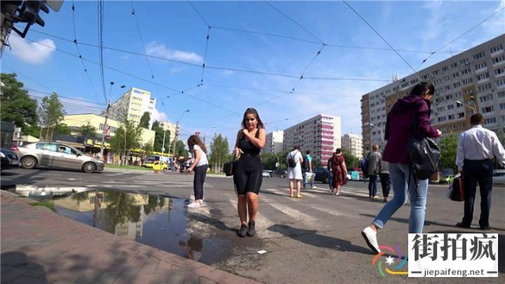 街拍紧身豹纹马裤性感身材长腿洋妞[MP4/299M]...