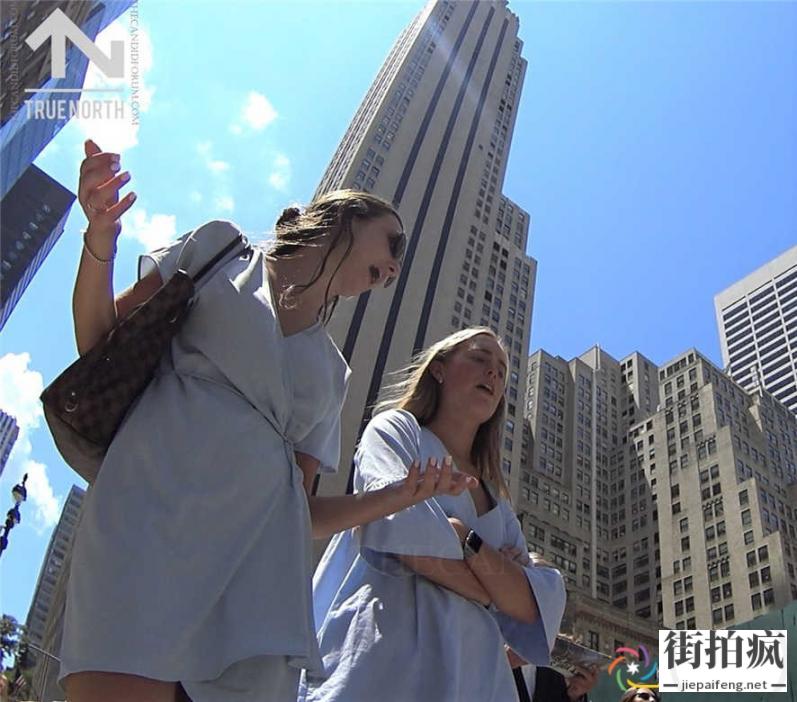 街拍两个连衣短裙金发年轻漂亮OL美女[MP4/184M]