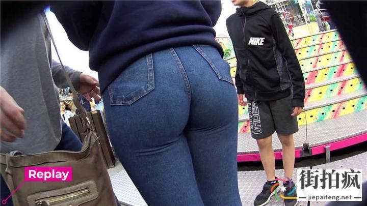 街拍蓝色紧绷牛仔裤年轻小妹极品翘臀[MP4/526M]