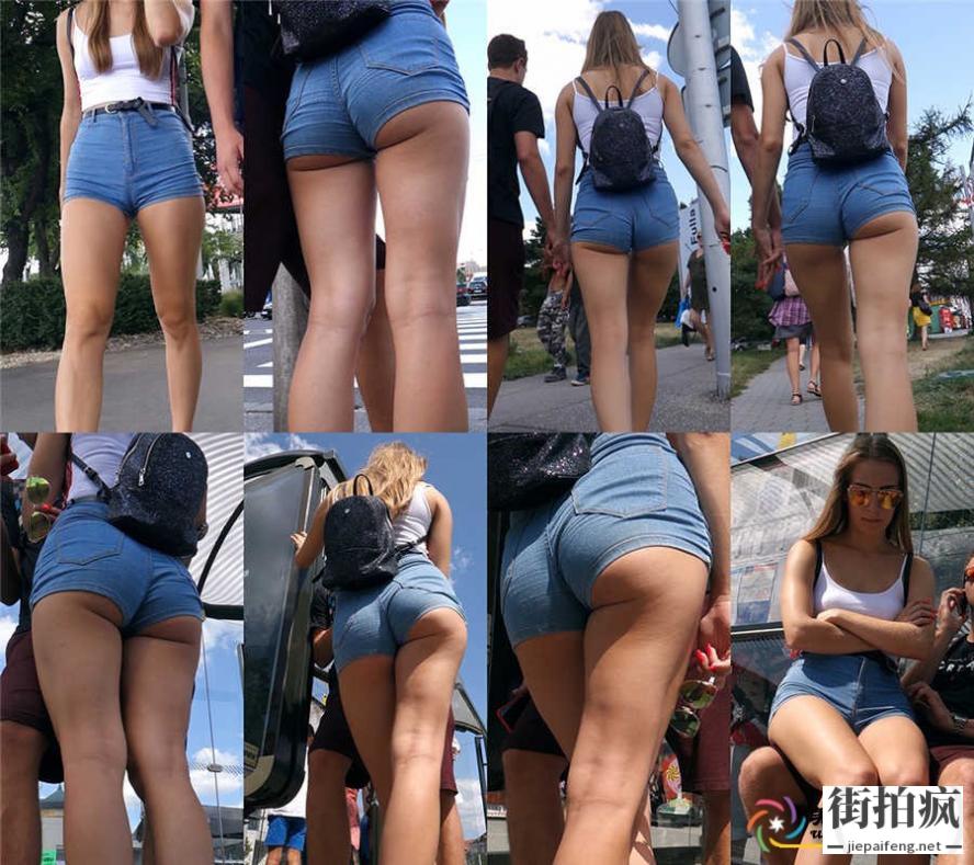 两个牛仔热裤极品圆润翘臀美腿金发美女[MP4/114M]