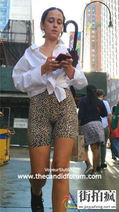 街拍紧身豹纹马裤性感身材长腿洋妞[MP4/299M]