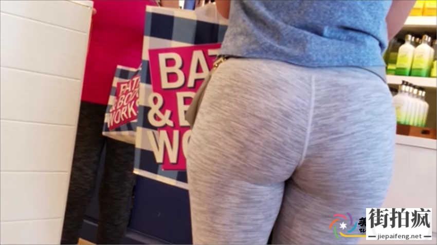 街拍灰色紧身瑜伽裤饱满圆润大屁股洋妞[MP4/452M]