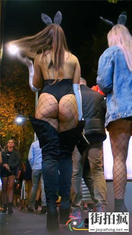 街拍黑色皮热裤俱乐部洋妞黑色网袜极品翘臀[MP4/269M]
