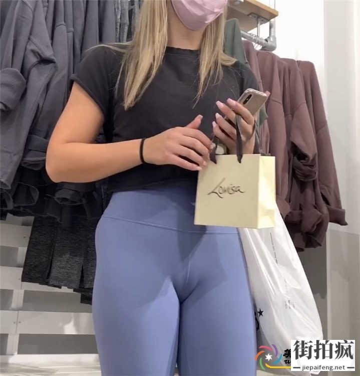 商场买衣服的灰色瑜伽裤金发美眉极品翘臀[MP4/749M]