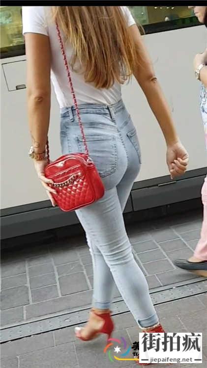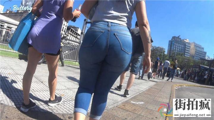 街拍几个紧身蓝牛性感圆润翘臀性感洋妞[MP4/128M]