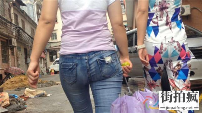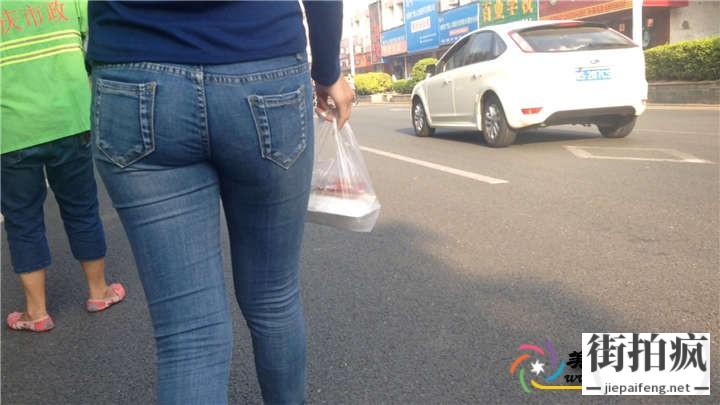 街拍蓝色牛仔马裤细腰性感饱满圆润翘臀少妇[MP4/359M]