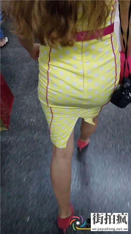 地铁站跟拍黄色连衣包臀短裙粉色高跟肉丝长发美女[MP4/979M]