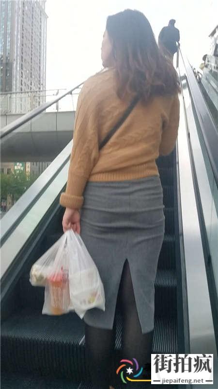 街拍灰色包臀长裙黑色丝袜高跟少妇[MP4/998M]...