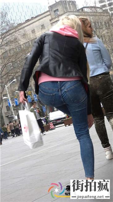 4K-街拍蓝色紧绷牛仔裤金发美女极品美腿圆润翘臀[MP4/638M] ...