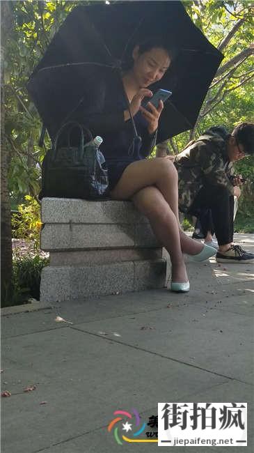 公园近拍笑容甜美的蓝色连衣短裙白色高跟OL美少妇[MP4/303M]...