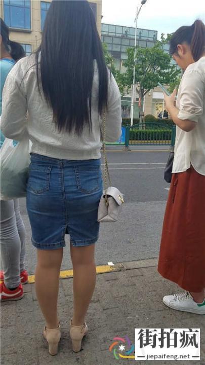 公交车站候车的蓝色短裙黑色丝袜高跟好身材少妇[MP4/503M]