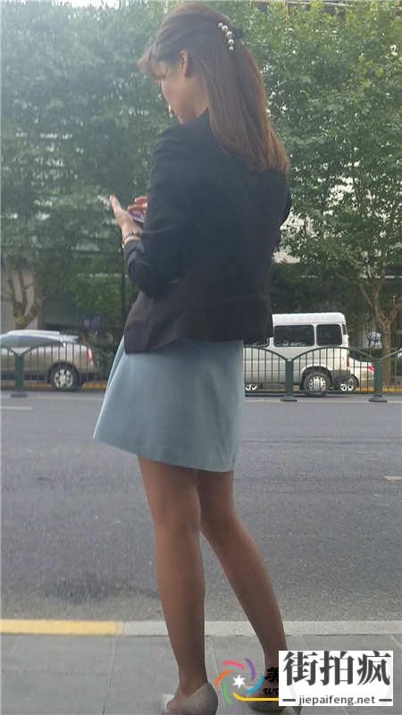 街拍肉丝高跟蓝色包臀短裙OL性感丰臀[MP4/805M]