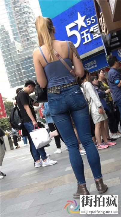 4K-跟拍蓝色紧身牛仔金发高挑洋妞极品丰臀[MP4/457M]...