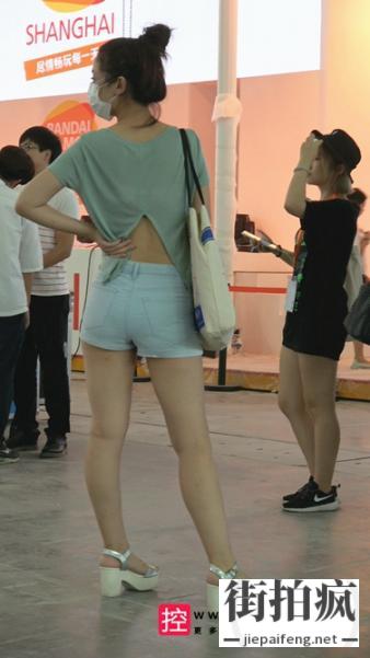 蓝色紧绷牛仔热裤极品长腿圆润饱满翘臀漂亮美女[MP4/398M]...
