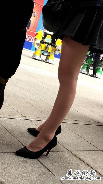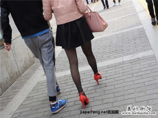 街拍黑色超短裙黑色丝袜极品美腿橙色高跟少妇[MP4/264M]