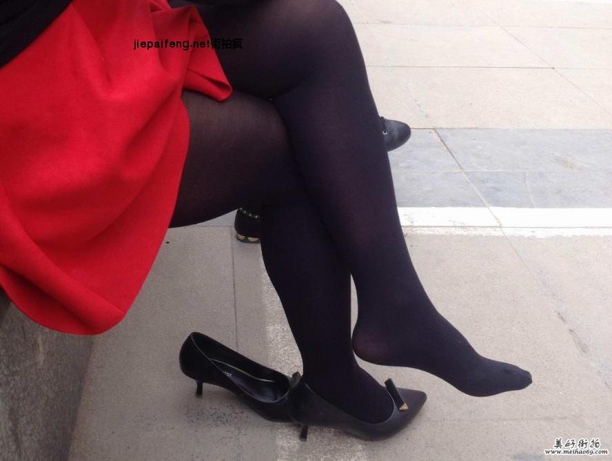 街拍红色连衣裙黑色丝袜黑色高跟美腿少妇凉脚[MP4/219M]