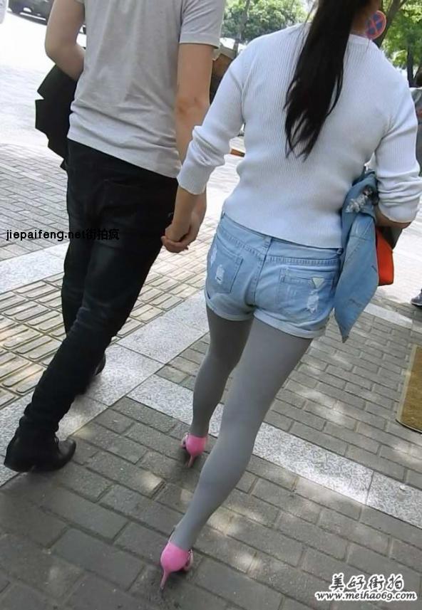 粉色高跟浅蓝牛仔短裤灰色丝袜美腿饱满翘臀少妇[MP4/227M]