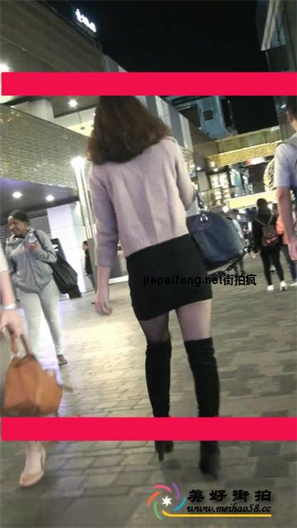 高清20-104-黑色包臀亮银高跟短靴的长腿少妇和男朋友逛街(二)