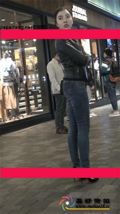 高清20-104-黑色包臀亮银高跟短靴的长腿少妇和男朋友逛街(五)...