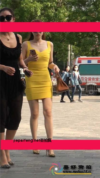 高清22-031-黄色紧身包臀性感铆钉高跟鞋的美腿小姐姐...