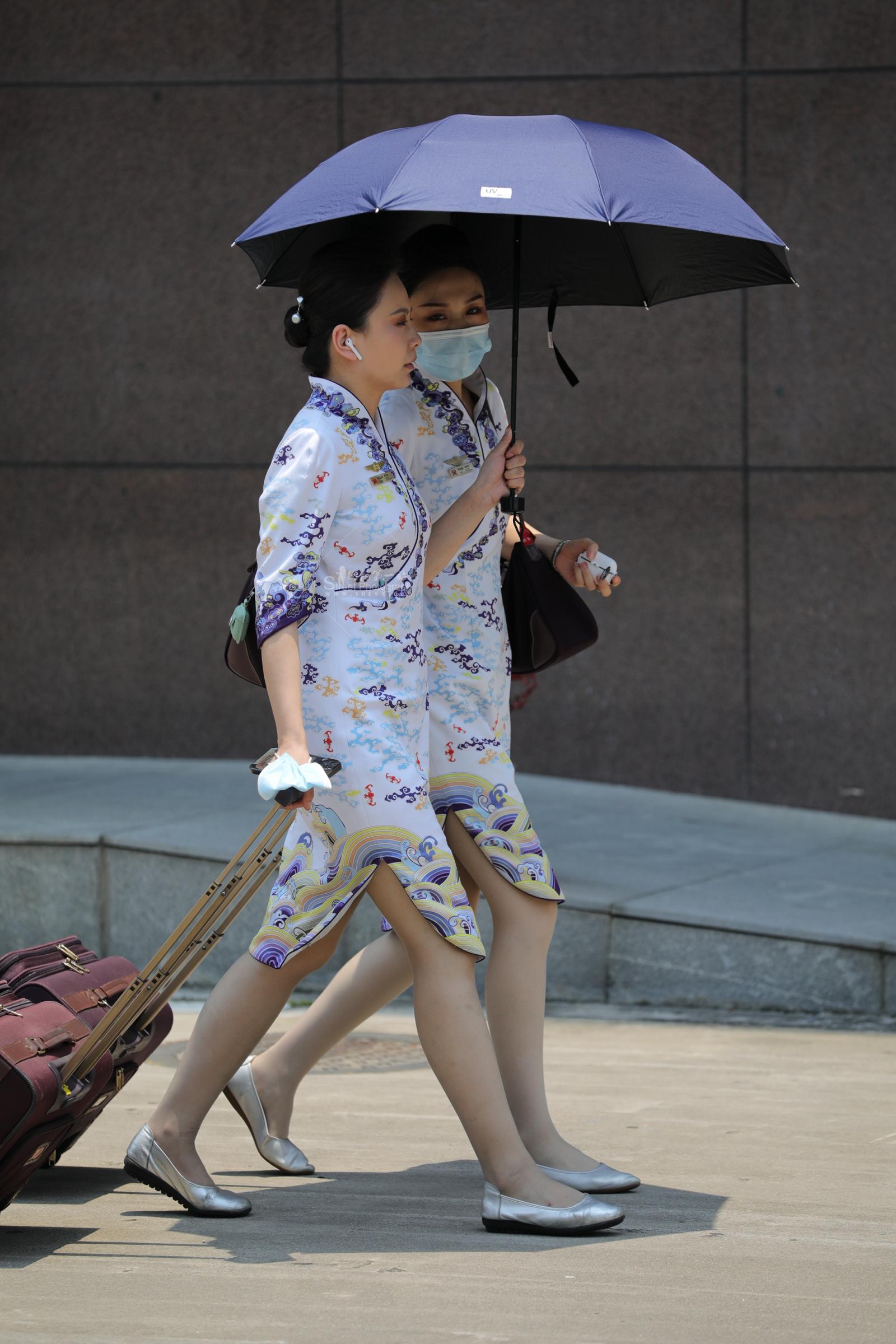 【独家原创】黑靴白袜美腿姐妹仰头看天