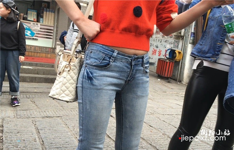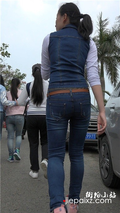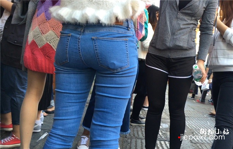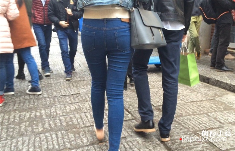 蓝色紧身蜜桃臀牛仔裤美眉