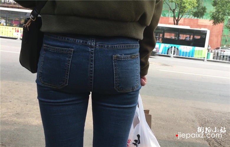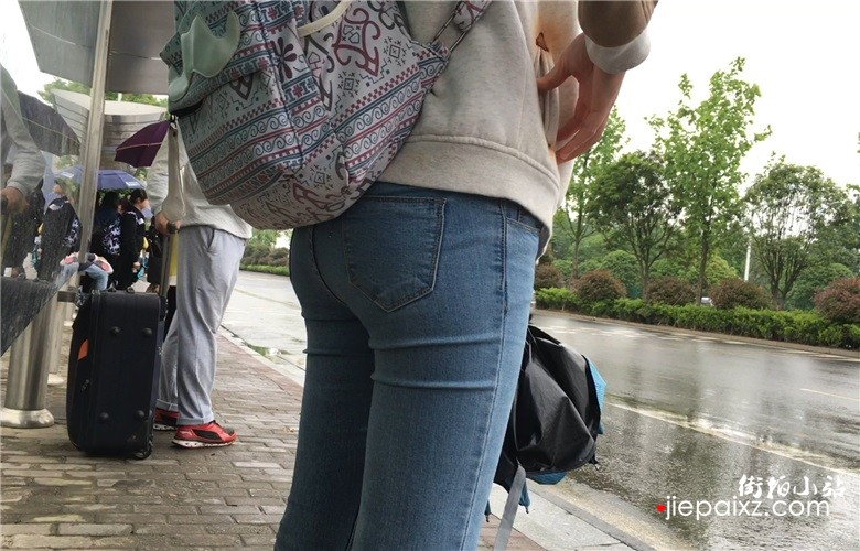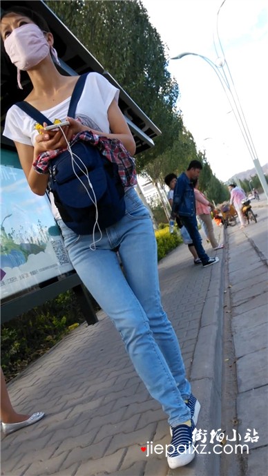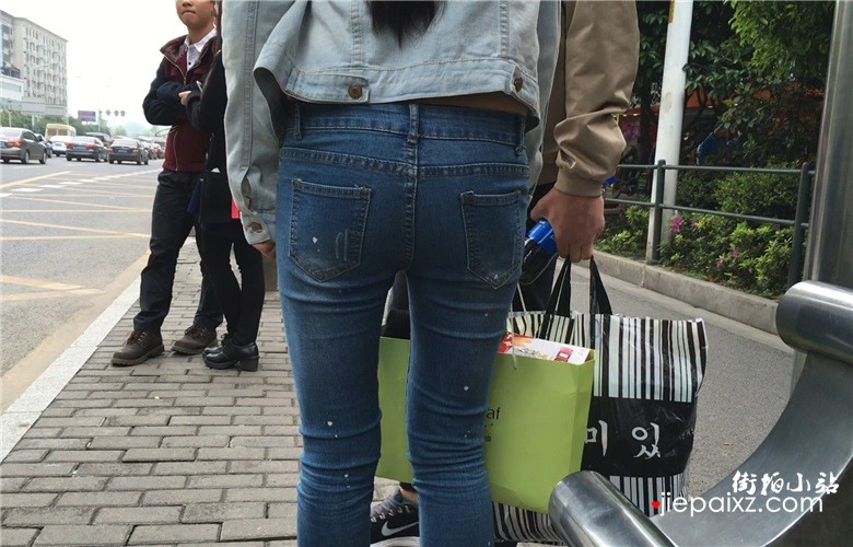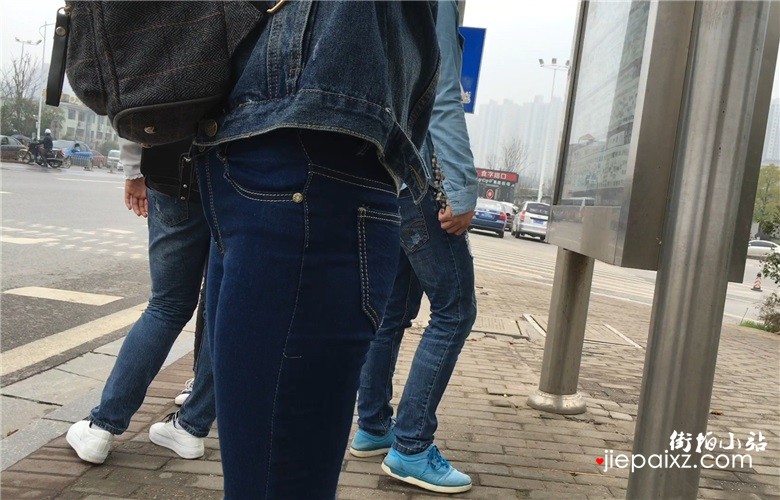 蓝色牛仔裤美眉等公交