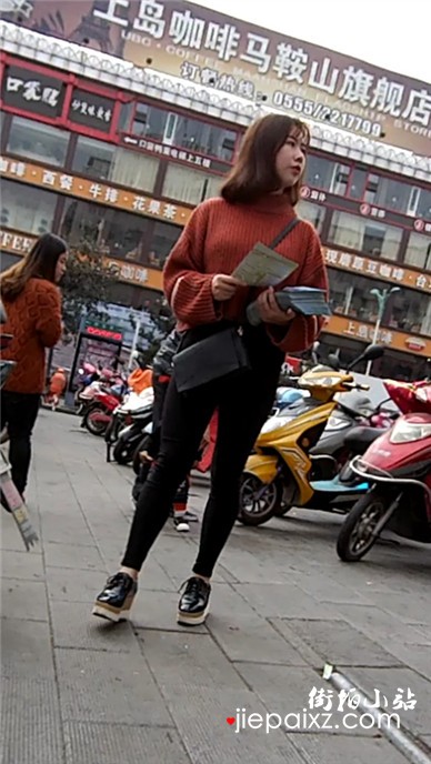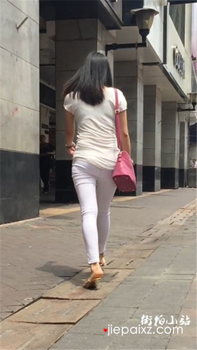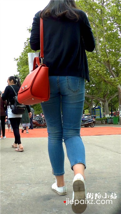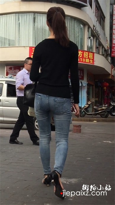 街拍小清新宽臀紧身蓝牛美颜小姐姐
