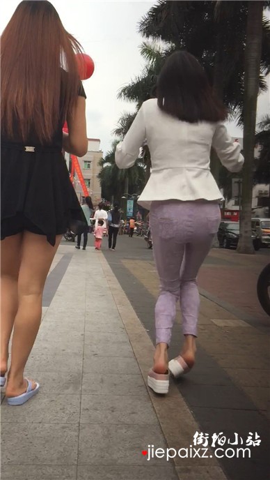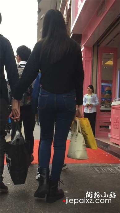 俏丽美臀紧身蓝牛美眉跟男友压马路