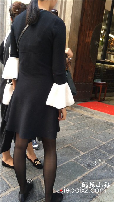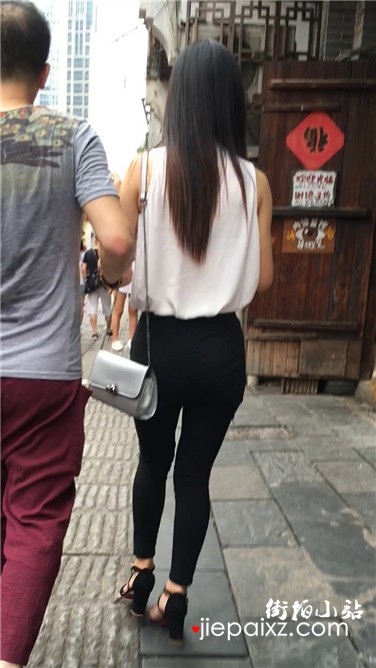 街拍苹果臀紧身黑裤妹子