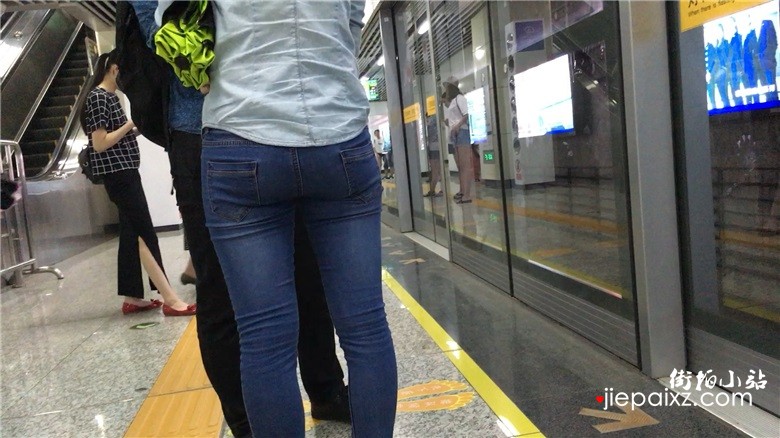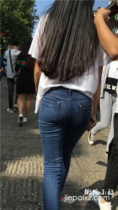 超紧身蓝色牛仔裤美眉,紧到没朋友