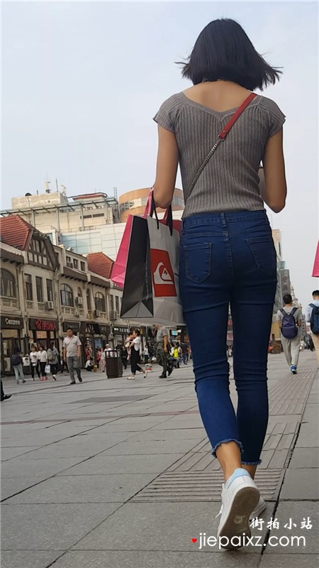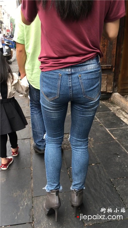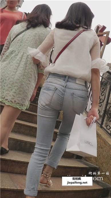 街拍超紧身蓝色牛仔裤美眉