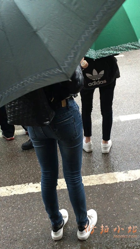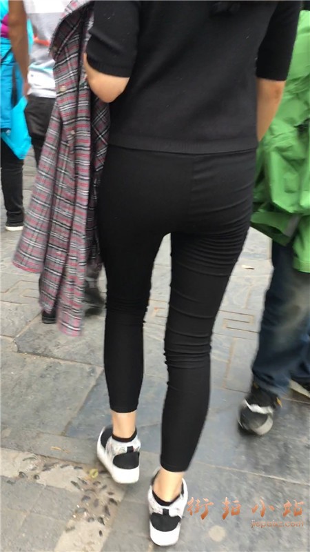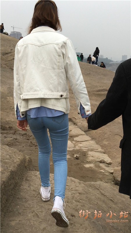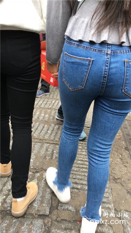 4k-街拍紧身蓝牛黄色毛衣小美女